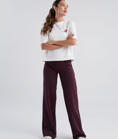 Jean gris, fit tipo «flare» con tiro alto y bolsillos parche en posterior. Cintura y cadera ajustadas naturalmente al cuerpo. Bordado en forma de corazón en bolsillo izquierdo.