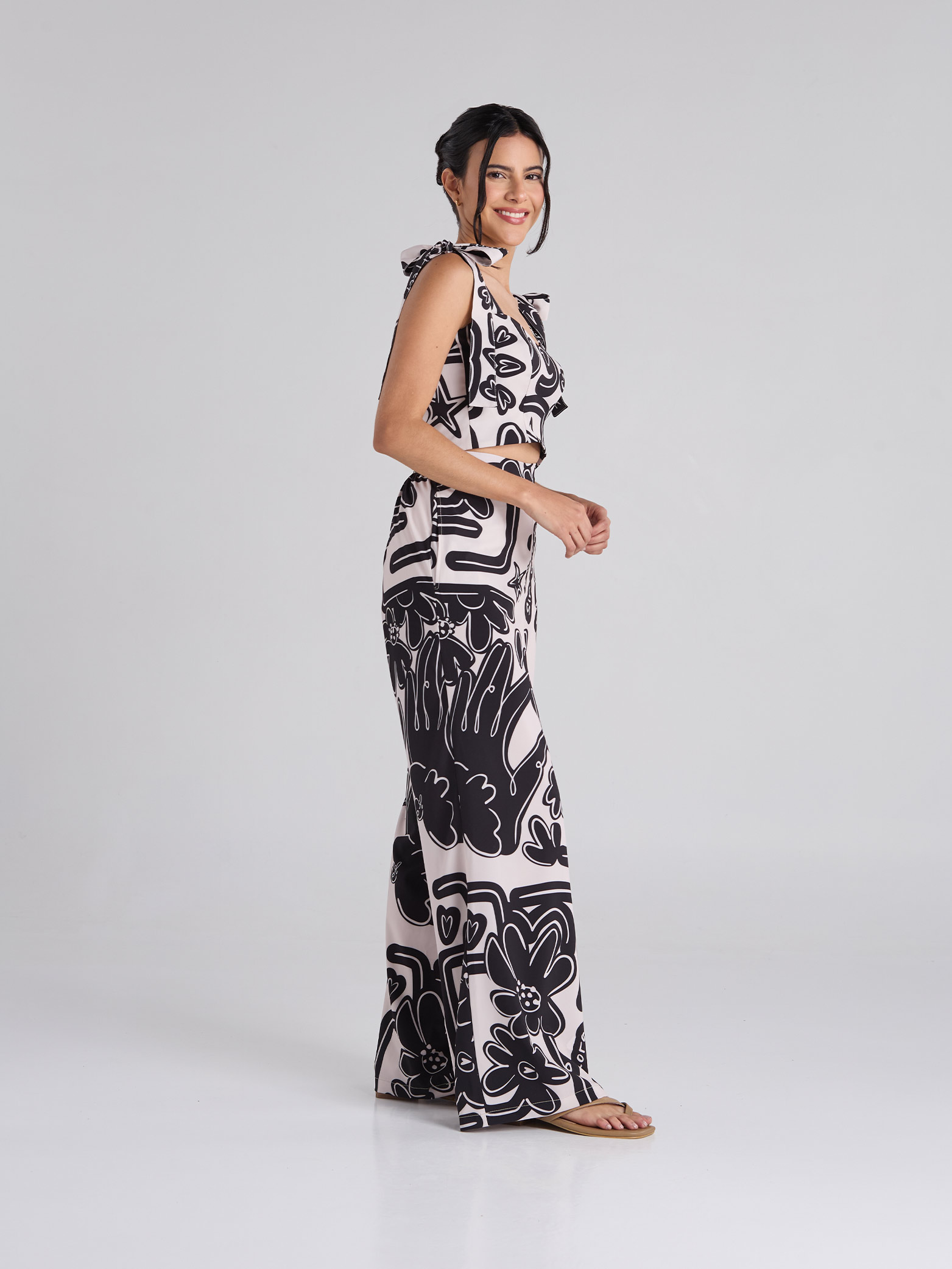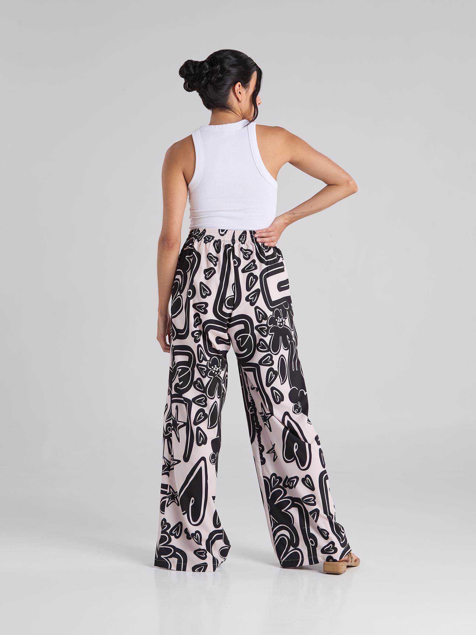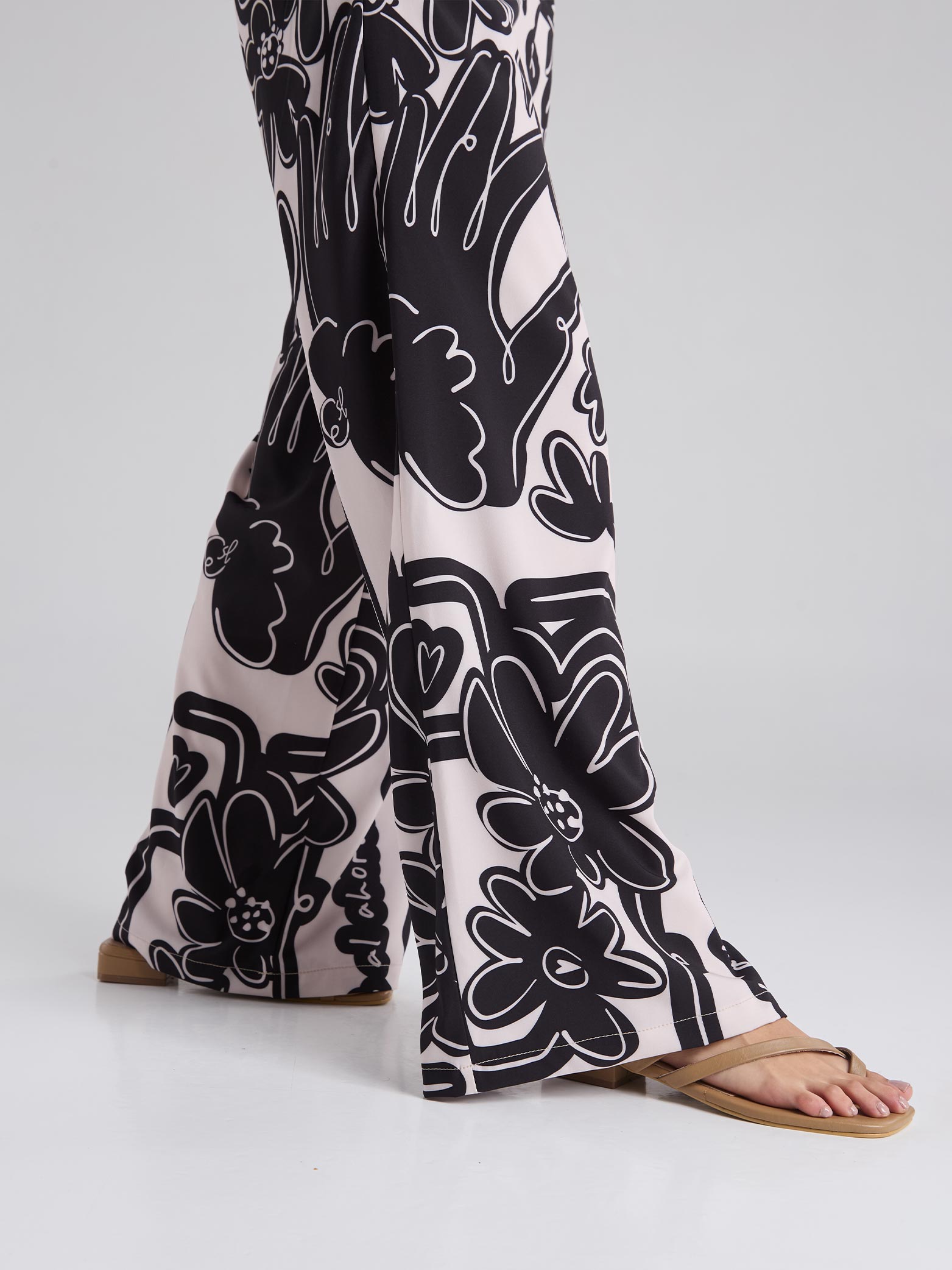 Pantalón estampado en tono arena, de corte recto, con bolsillos delanteros funcionales y pretina semiresortada.